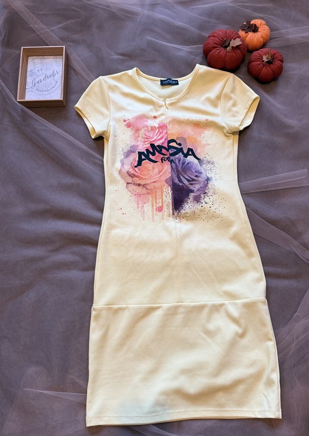 Mellbőség: 37cm, Derékbőség: 32cm, Hossza válltól: 85cm