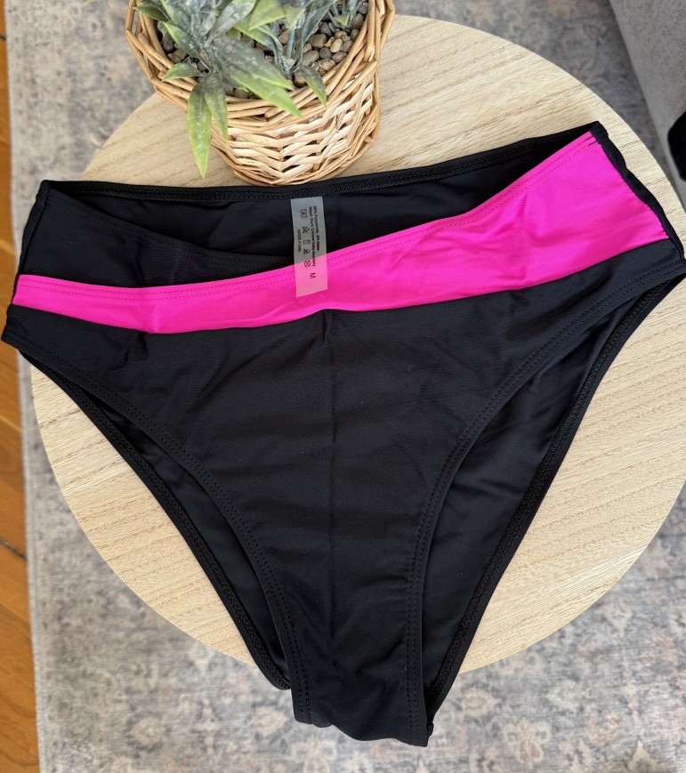 Fekete–pink bikini szett.