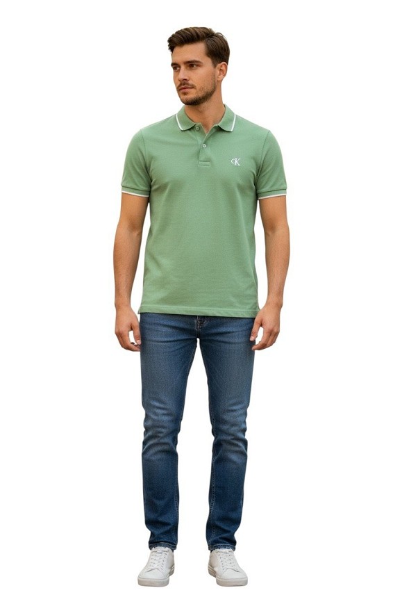 Zöld színű galléros darab, hímzett CK logóval. Kényelmes, sportosan elegáns viselet, szép állapotban. Tökéletes hétköznapokra vagy lazább alkalmakra is.