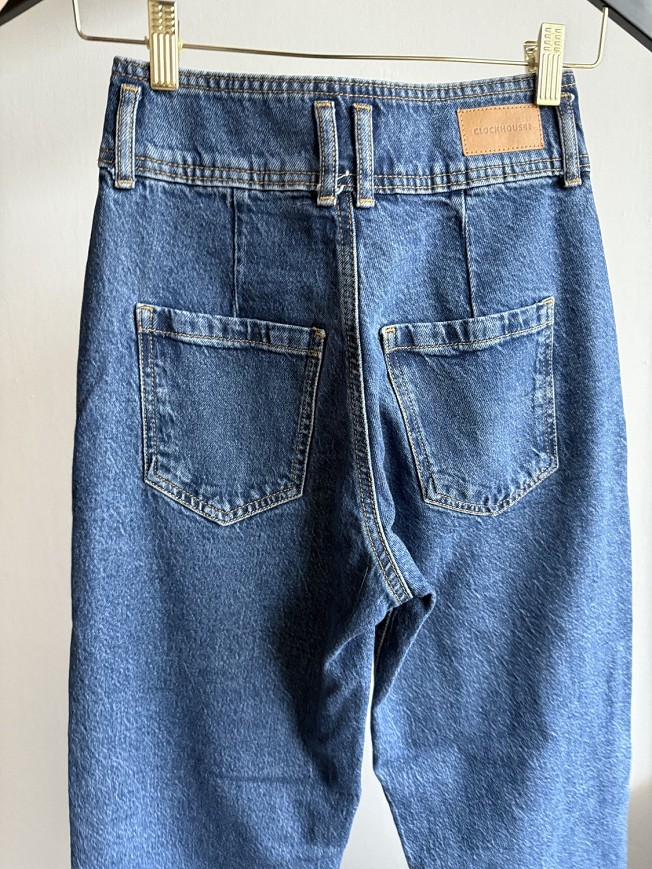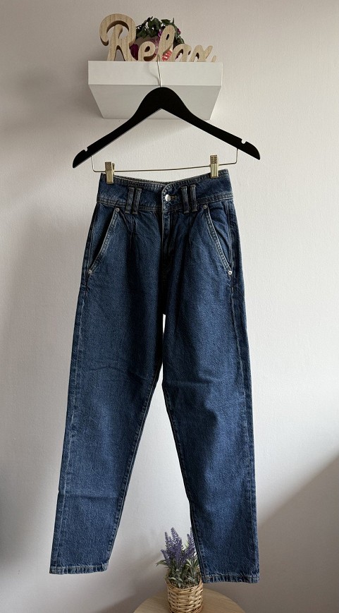 Divatos, magas derekú farmer klasszikus kék színben. Lazább, egyenes szárú fazonja kényelmes viseletet biztosít, miközben trendi megjelenést ad. Oldalzsebes kialakítása és letisztult vonalai miatt könnyen kombinálható basic felsőkkel vagy akár csinosabb darabokkal is. Megkímélt, jó állapotú nadrág, hétköznapi használatra tökéletes választás.