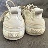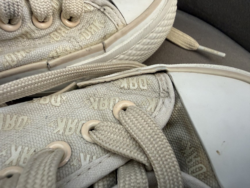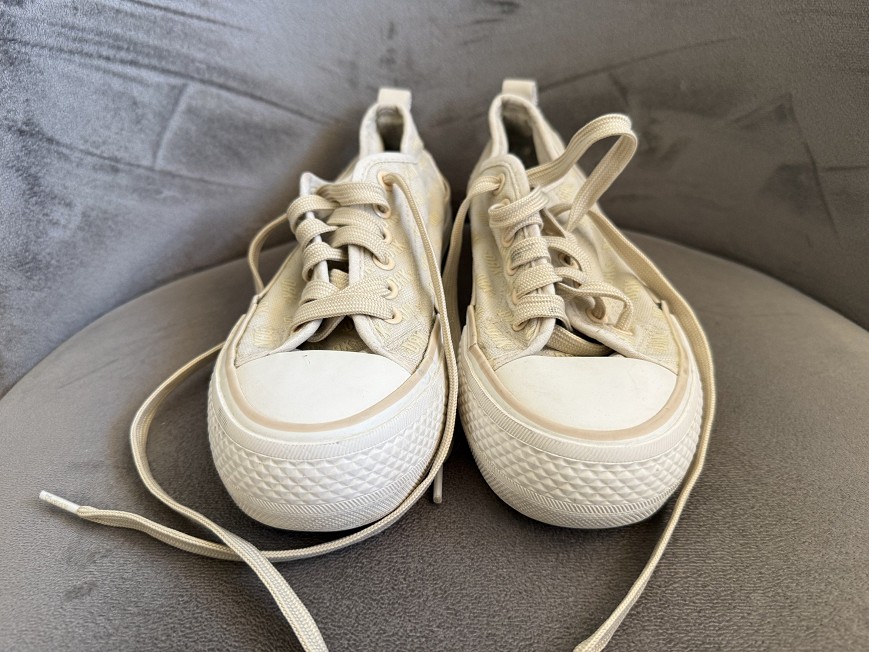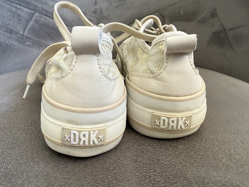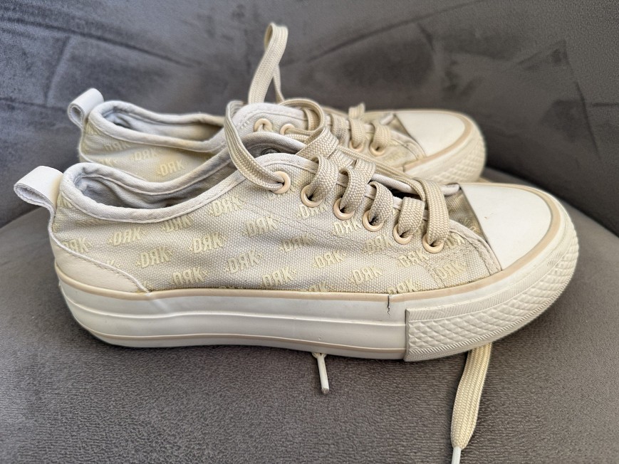 Bézs árnyalatú,Dorko feliratos mintával díszített platform tornacipő. Vastag talpú, divatos fazon, ami farmerrel és ruhával is jól kombinálható.