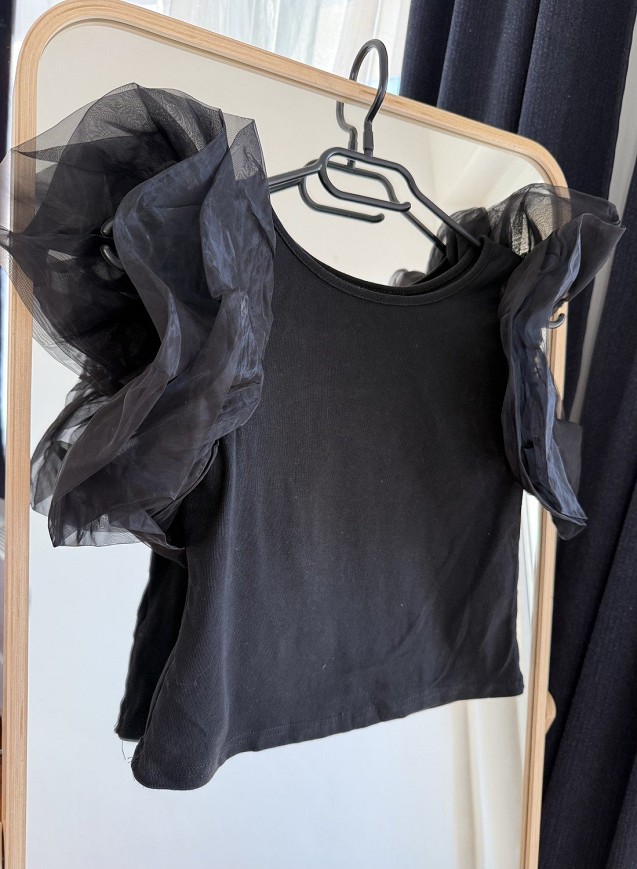💖 Igazán különleges darab a látványos, tüllös fodros ujjakkal, ami azonnal feldobja az outfited ✨