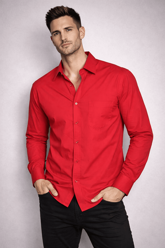 Élénk piros színű, klasszikus fazonú férfi ing.
