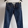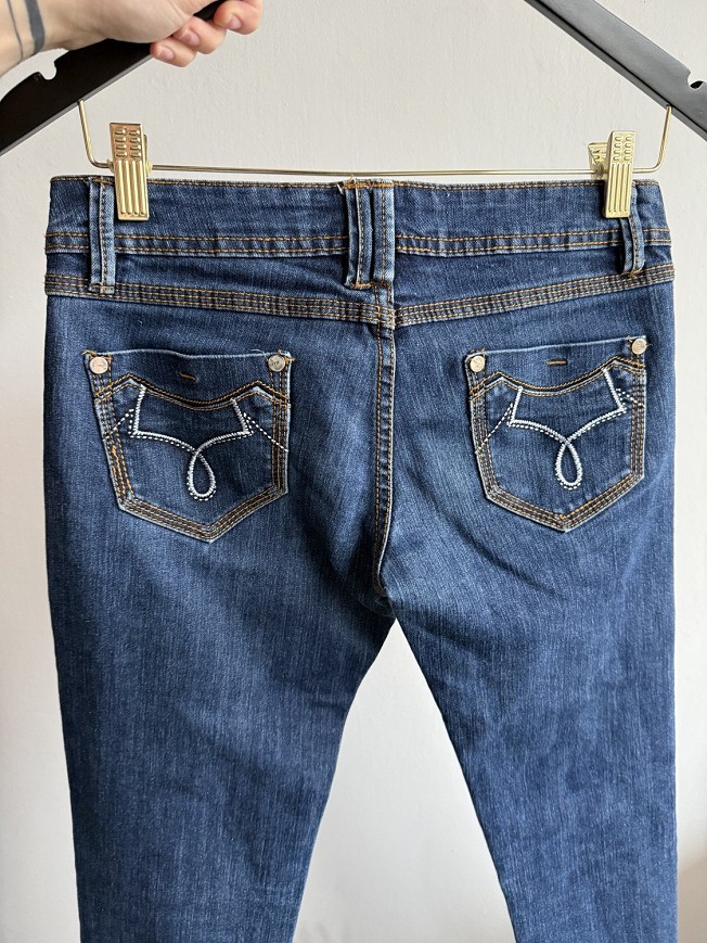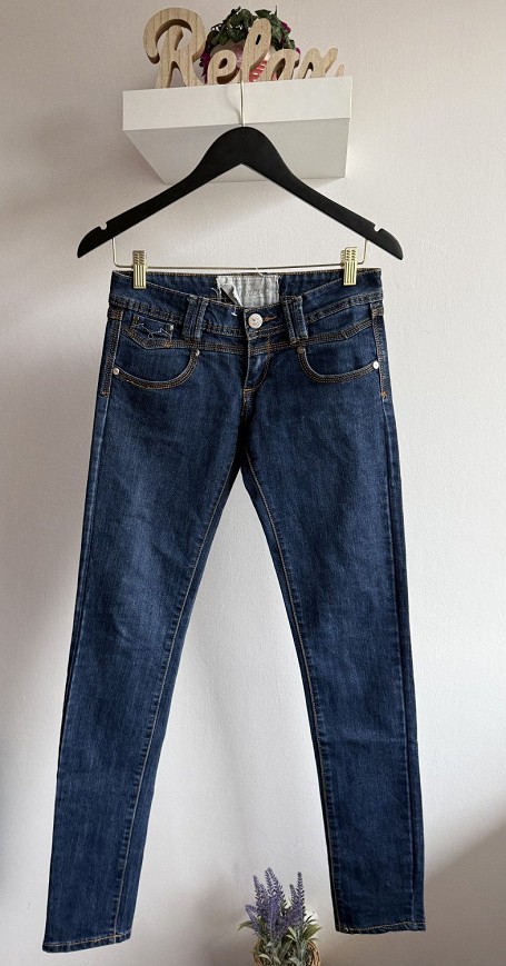 Sötétkék színű, klasszikus farmernadrág letisztult vonalvezetéssel. Karcsúsított fazonja szépen formálja az alakot, anyaga kellemes tapintású és kényelmes viselet a mindennapokra. Könnyen kombinálható alapdarab, amely jól működik sportosabb és elegánsabb szettekben is. Szép állapotú.