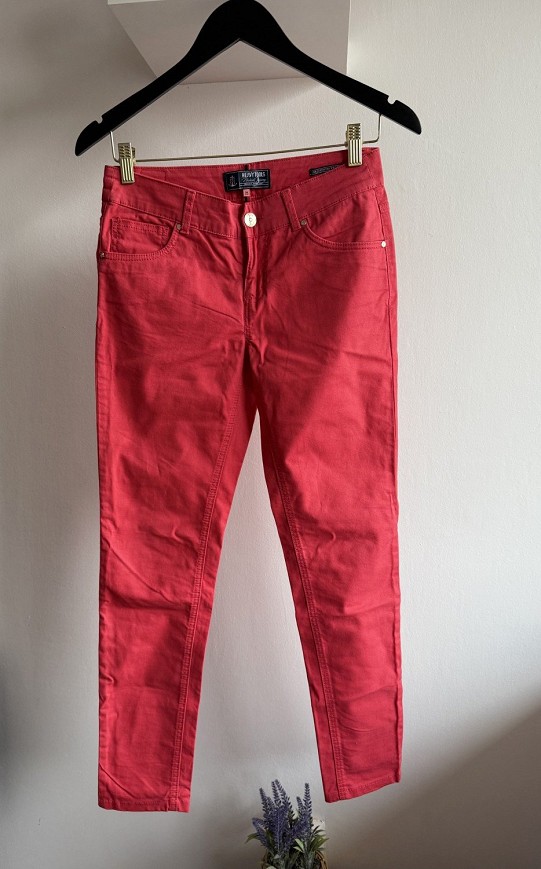 Heavy Tools márkájú, élénk piros színű nadrág.