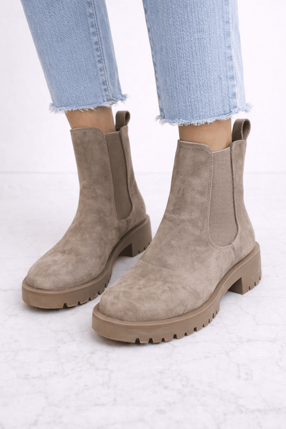 Letisztult fazonú, kényelmes bokacsizma vastag, stabil talppal.