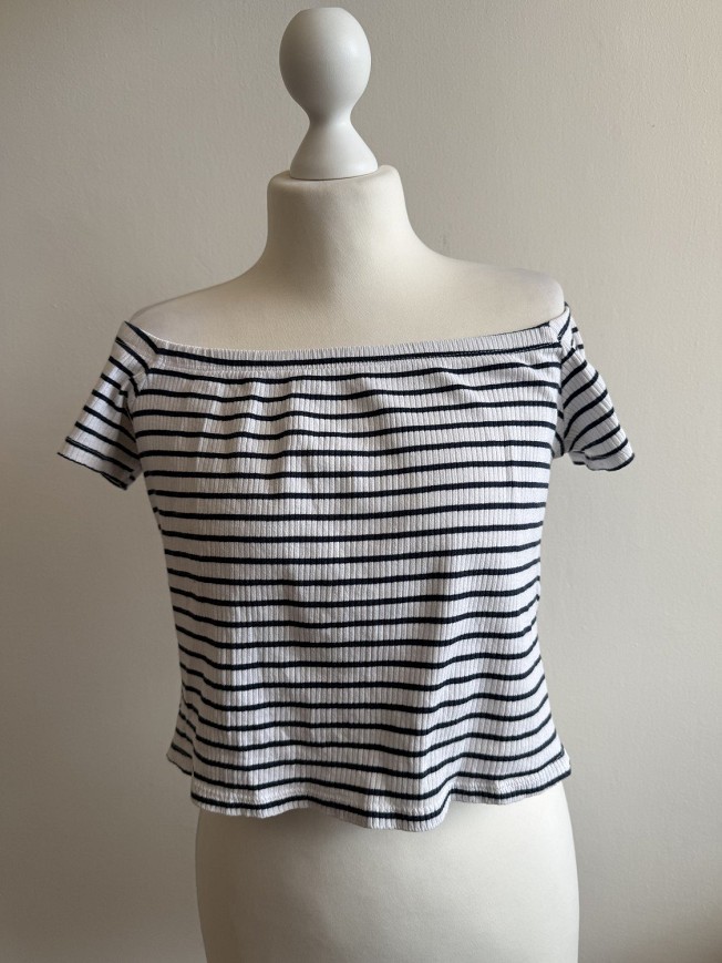 Vállra húzható fazon, bordázott, rugalmas anyaggal. Nőies, nyári darab.