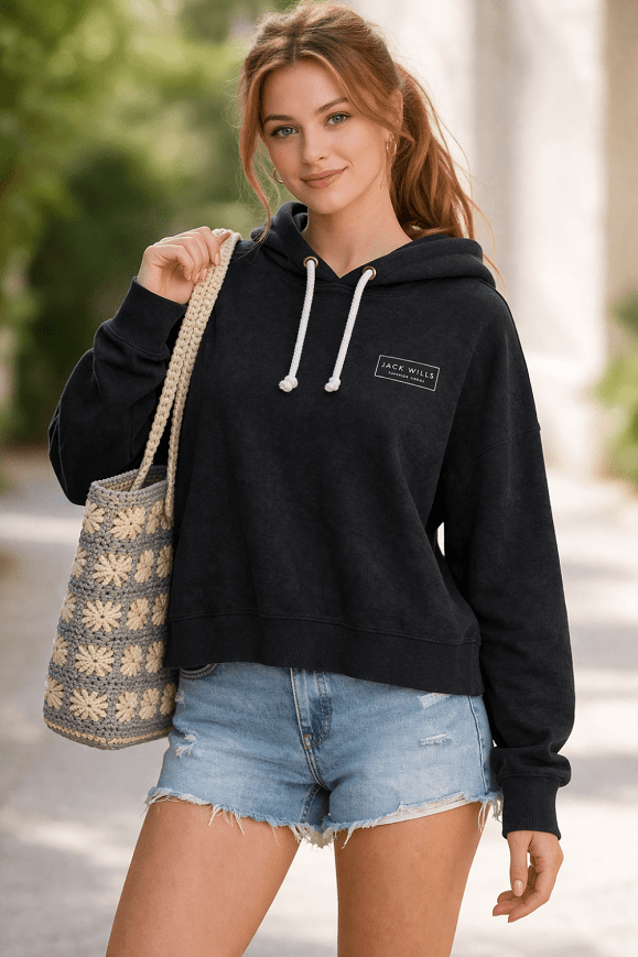 Sportos, letisztult Jack Wills pulóver kapucnival. Rövidebb fazonú, kényelmes viselet, elöl visszafogott logóval. Tökéletes hétköznapokra, lazább szettekhez.