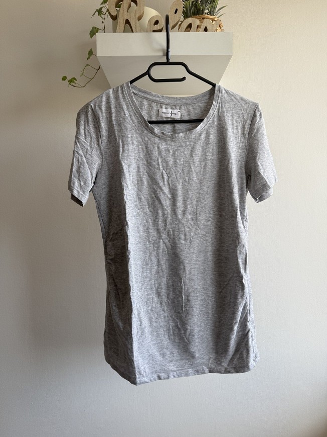 Oldalt enyhén húzott/szabott fazon, ami szépen követi a pocak formáját és kényelmesen bővül.