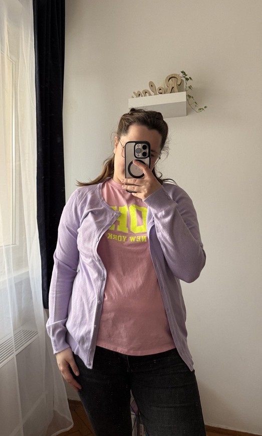Lila, finom kötött női kardigán, klasszikus gombos fazonban. Puha, kellemes tapintású anyag, ami rétegezve és önmagában is jól mutat. Letisztult, nőies darab a hétköznapokra.