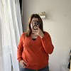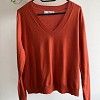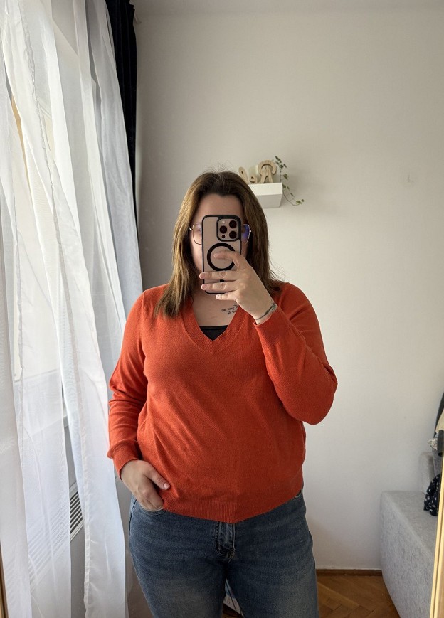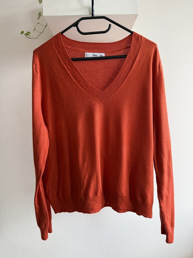 Mango narancs árnyalatú, V-nyakú pulóver.