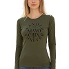 Rugalmas anyagú, testhezálló fazonú hosszú ujjú felső, vagány felirattal. Kényelmes viselet, jól rétegezhető.