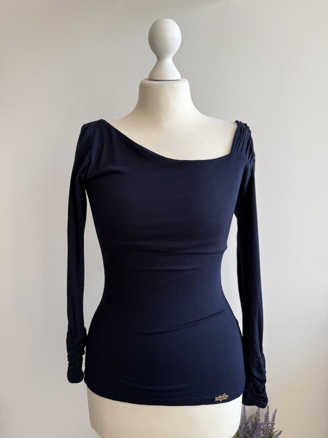 Nőies, testhezálló fazon különleges, aszimmetrikus vállkialakítással. Elegáns és hétköznapi szettekhez is könnyen kombinálható darab.