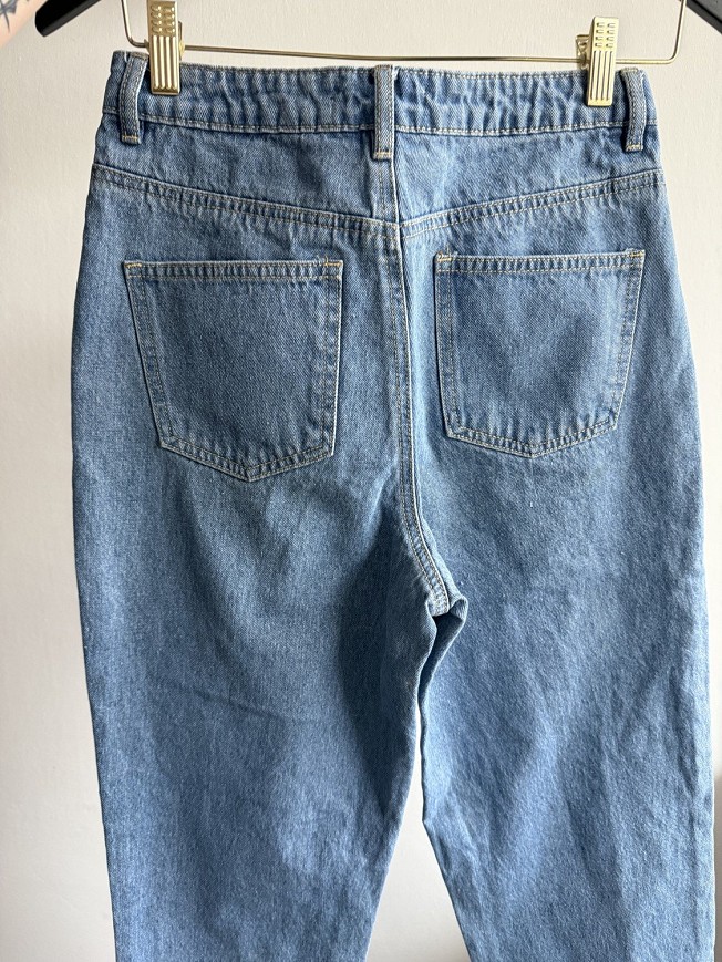 Divatos Missguided farmernadrág klasszikus kék színben. Letisztult, időtálló darab, enyhén bővebb, egyenes fazonnal, amely kényelmes viseletet biztosít a mindennapokra. Közepes vastagságú farmeranyagból készült, jól kombinálható sportos és nőies szettekhez is. Szép állapotú, megkímélt darab.