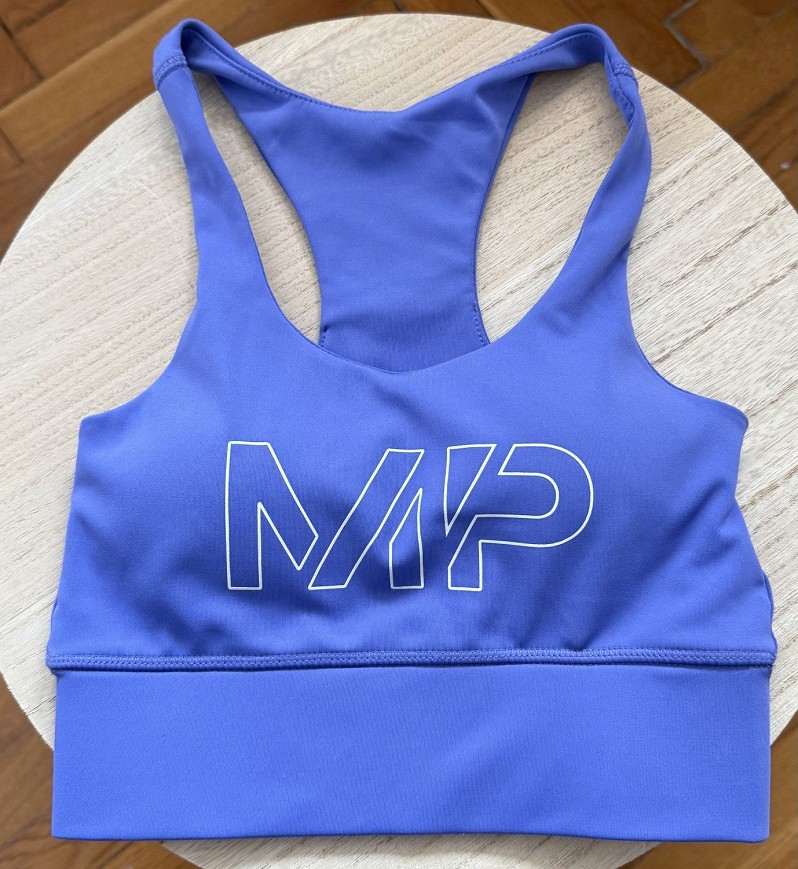 Kék színű, letisztult sportmelltartó „MP” logóvalRugalmas, kényelmes anyagból készült, hátul racerback fazonnal, így edzéshez és hétköznapi viselethez is ideális. Jól tart, mégis kényelmes mozgás közben.