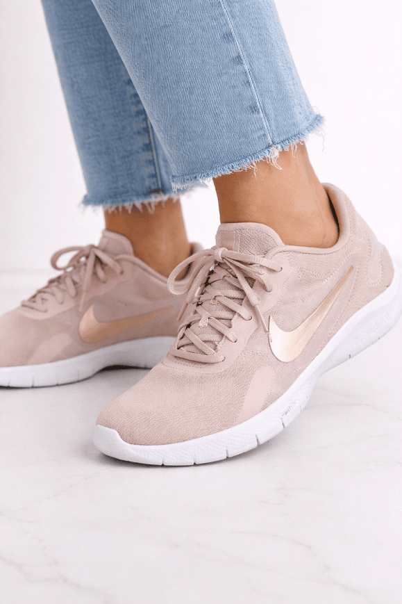 Világos árnyalatú, sportos fazonú Nike cipő.
