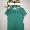 Zöld színű, elegáns felső csipkés vállrésszel és gallérral.