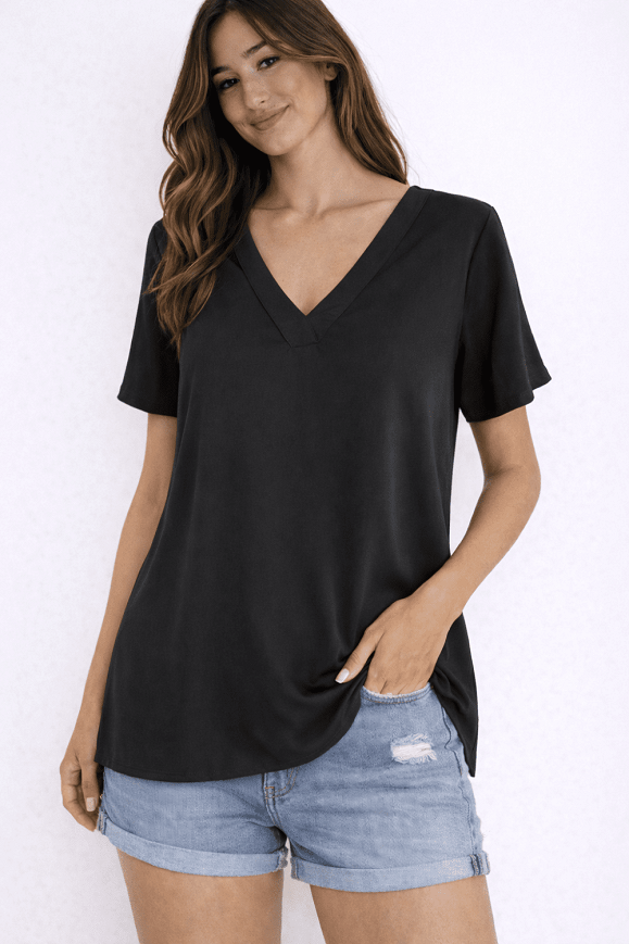 Fekete, V-kivágású, könnyed esésű felső 🖤