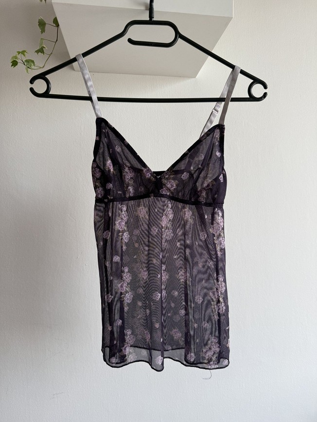 Finom, áttetsző anyagú top romantikus virágmintával. Könnyed, nőies darab, ami tökéletes egy csinosabb szetthez vagy akár rétegezve is nagyon jól mutat. Vékony pántos kialakítás, légies, lágy esés.
