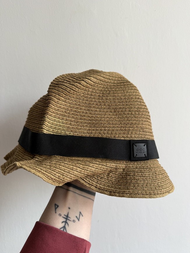 Divatos, nyári EDC kalap természetes hatású anyagból. Klasszikus fazon fekete szalaggal, ami elegáns megjelenést ad. Tökéletes választás napsütéses napokra, strandhoz vagy városi sétákhoz is.