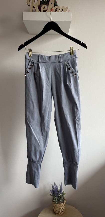 Kényelmes, divatos fazonú női nadrág, puha tapintású anyagból. Derékban enyhén rugalmas kialakítású, jól alkalmazkodik az alakhoz. Oldalt dekoratív gombos részletekkel, letisztult, nőies megjelenéssel. Több színben elérhető, könnyen kombinálható hétköznapi és csinosabb szettekhez is. Gumis derékkal.
