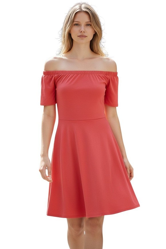 Nőies, csinos ruha, vállra húzható fazonnal, ami gyönyörűen kiemeli a vállakat és a dekoltázst ✨