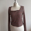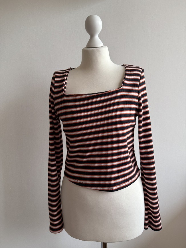 Primark csíkos, hosszú ujjú crop felső trendi színösszeállításban. Testhez simuló, rugalmas anyaga kényelmes viseletet biztosít, rövidebb fazonja pedig modern megjelenést ad. Tökéletes választás magas derekú nadrággal vagy farmerrel kombinálva.