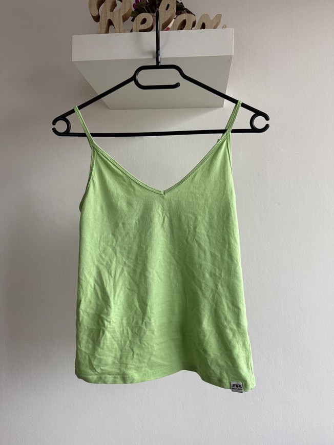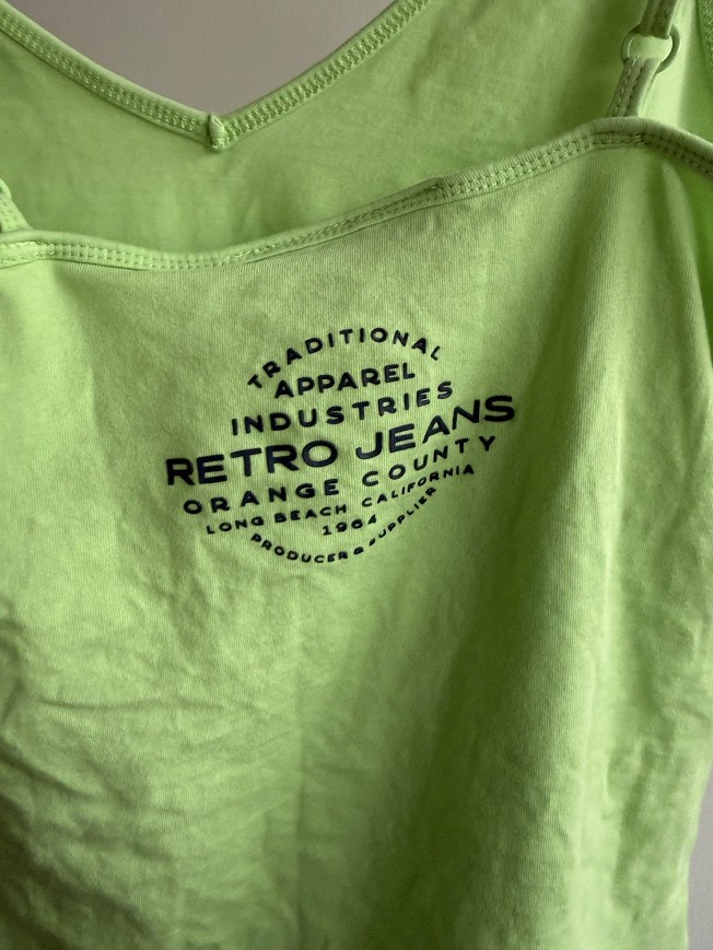 Egyszerű, nyári alapdarab vékony pántokkal. Elöl letisztult, hátul Retro Jeans felirattal, ami különlegessé teszi. Farmerrel, shorttal könnyen kombinálható.