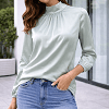 Shein világos mentazöld színű, hosszú ujjú női blúz magasított nyakkal és finoman puha, selymes esésű anyagból. Letisztult, mégis elegáns fazon, amely könnyedén kombinálható elegáns nadrággal vagy szoknyával akár alkalomra is. Tökéletes választás az átmeneti időszakra vagy irodai, hétköznapi viselethez.