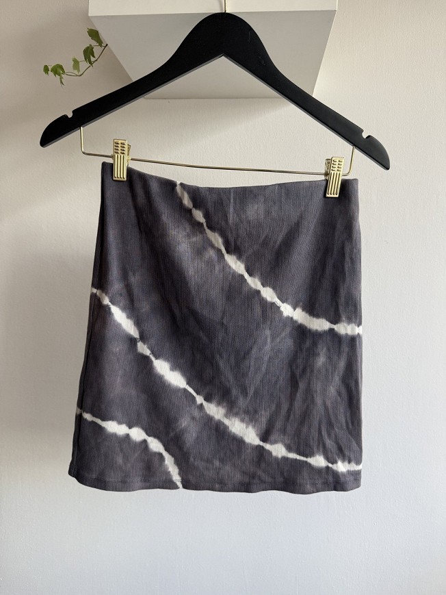 Rugalmas, bordázott anyagú mini szoknya különleges fehér batik mintával. Testhezálló fazon, kényelmes viselet, ami toppal vagy oversized pólóval is szuperül kombinálható.