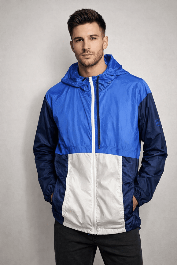 Könnyű, sportos fazonú széldzseki cipzárral és kapucnival.