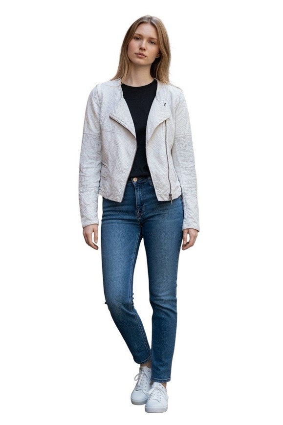 Letisztult, csinos fazon, steppelt anyaggal, átlós cipzárral.